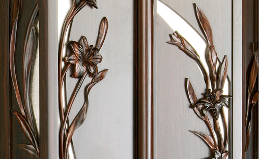 最前線で頑張っておられる白ゆり長さんに喜んでいただきたいとの思いを込めてデザインしました。欄間の彫刻は白ゆりのように気高く、甘い香りが漂うようなリアルな表現にこだわりました。