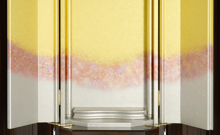 従来の厨子のイメージを一新し、厨子内仕上げに初めて採用された西陣の金・銀箔は、桜風の言葉通り、一面の花吹雪をイメージしています。