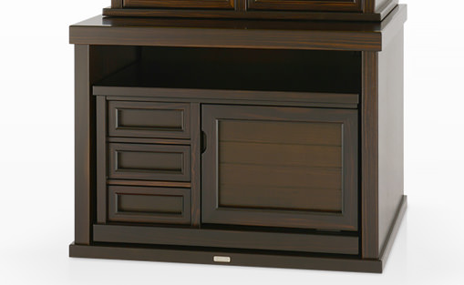 お仏壇の中段部(お厨子の下付近)に収納がついています。普段はあまりご利用にならない大切に保管しておきたいものを収納するのに最適です。
