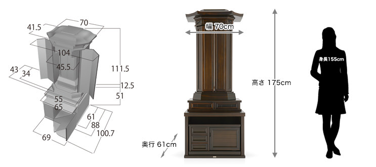 [本体寸法] 高さ175×幅70×奥行き61cm