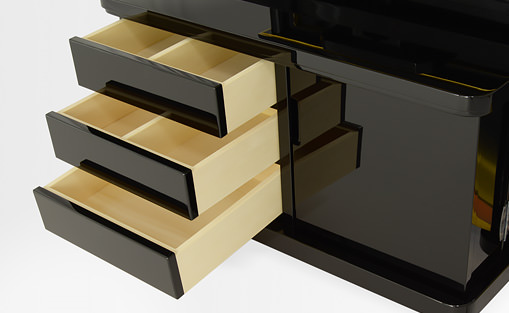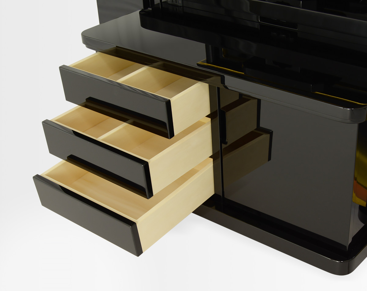 新たに採用したポリ塗装は、漆塗りの高級感を再現しながら、漆塗りを凌ぐ堅牢さを実現しました。抜群の耐久性も実証済みの、傷・湿気などに強い塗装です。