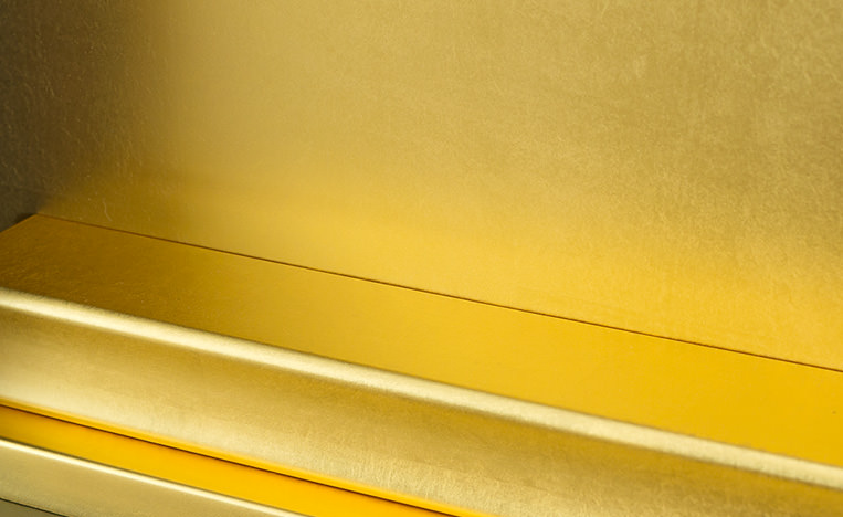 高貴な輝きに溢れた厨子。施された本金箔は、温度や湿度に左右されることなく、何百年、何千年と輝きが失われることはありません。伝統工芸を今に受け継ぐ金箔師の技が冴え永遠の輝きが御本尊様を荘厳します。