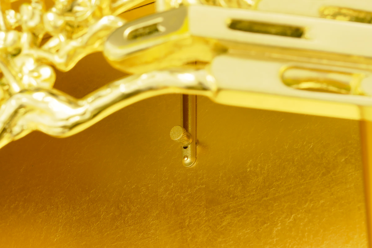 大切にしたのは厨子扉を開閉するモーターの位置。仏壇業界で主流の上置きモーターは、御本尊様の頭に機械を置いた形。目に見えない所にもこだわる金剛堂では、全てのお仏壇が御本尊様の下にモーターが置かれるように設計されています。