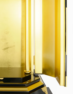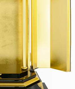 高貴な輝きに溢れた厨子。施された本金箔は、温度や湿度に左右されることなく、何百年、何千年と輝きが失われることはありません。伝統工芸を今に受け継ぐ金箔師の技が冴え永遠の輝きが御本尊様を荘厳します。