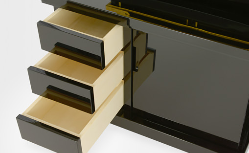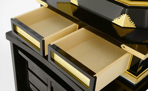 新たに採用したポリ塗装は、漆塗りの高級感を再現しながら、漆塗りを凌ぐ堅牢さを実現しました。抜群の耐久性も実証済みの、傷・湿気などに強い塗装です