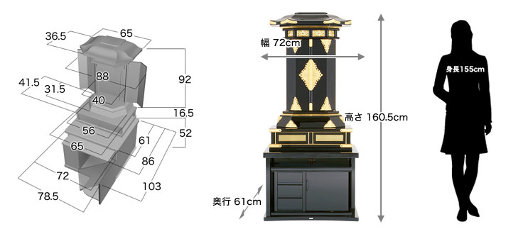 [本体寸法] 高さ160.5×幅72×奥行き61cm
