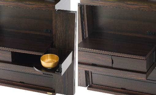 祈るときは引き出し、祈り終えたらしまい、すっきり収納できるテーブルは、リビングなどでも気持ち良くお使いいただけます
