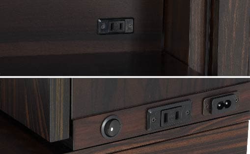 スライド式のテーブルの奥と、上台の側面にコンセントがついています。置トーロや電気ローソクをご利用いただくのに便利です。