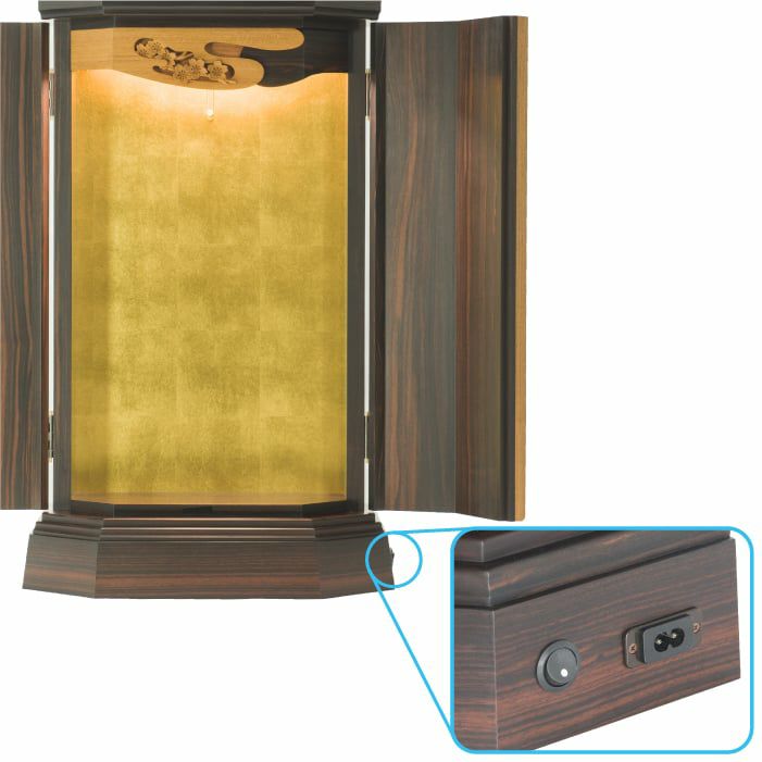 コンパクトでありながら、お仏壇内部を明るく照らす照明はLED。長期にわたり、明るく照らします。