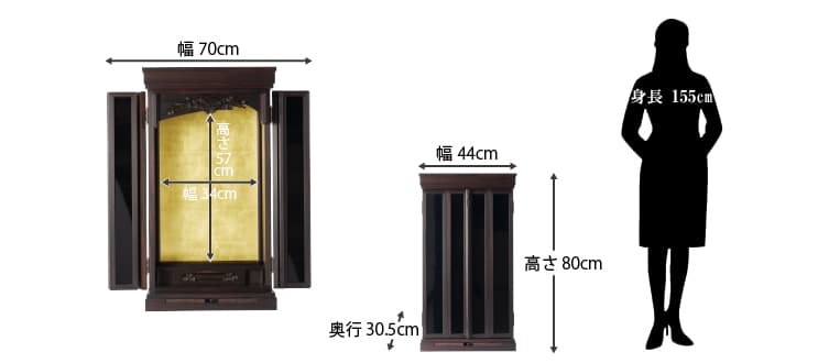 30×18cmの大きめの膳引きがついているので、果物やお菓子などを広々とお供えすることができます。大戸を閉めた状態でもご利用いただけるよう改良致しました。