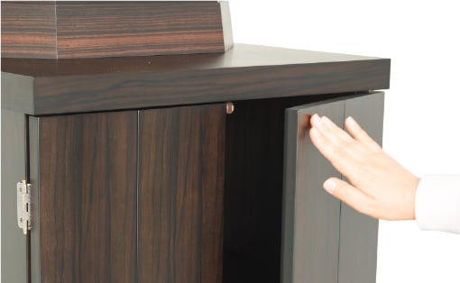 収納式の経机は安定感があり、仏具などを置いてご使用いただけます。使わないときは仕舞えて扉を閉めればスッキリと収めることができます。