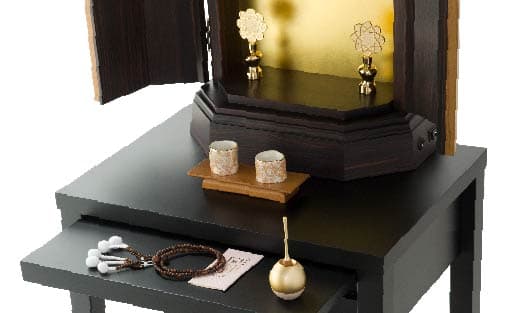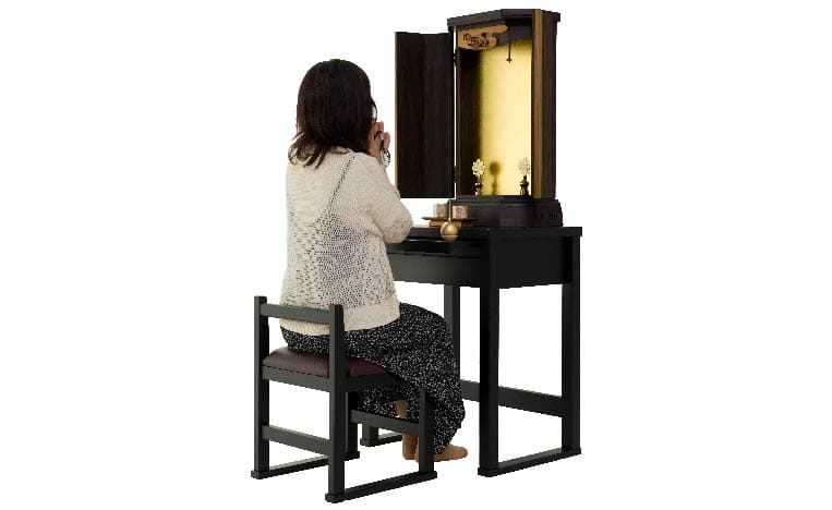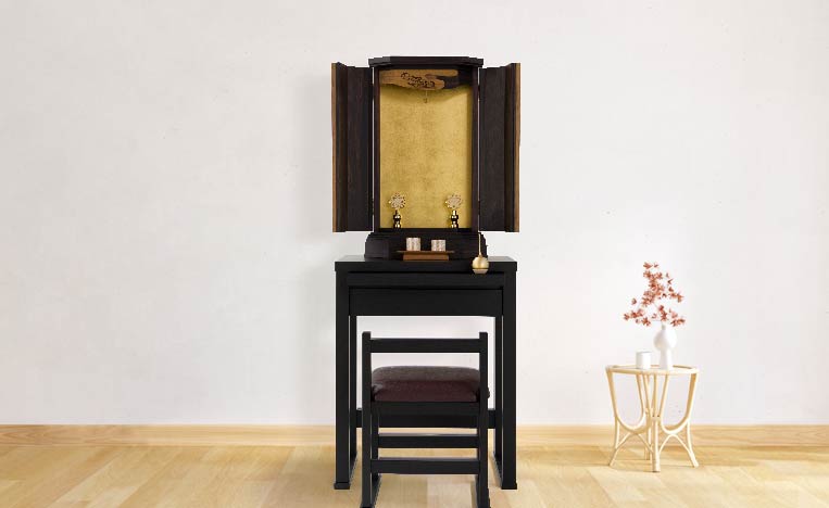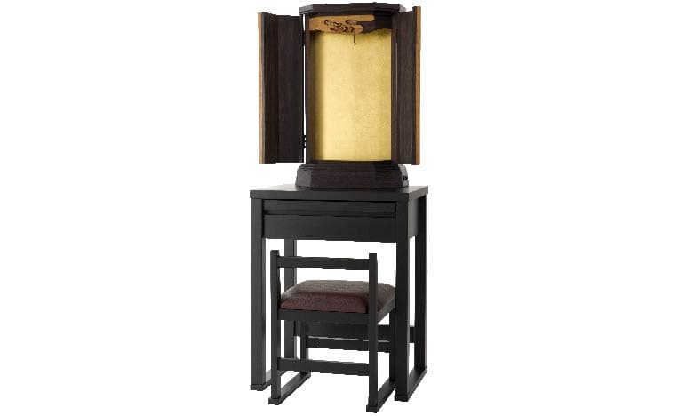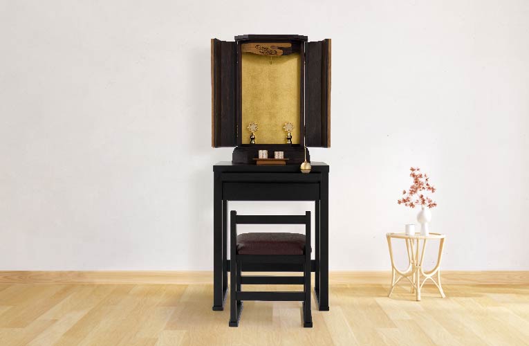 お客様のお声から金剛堂オリジナルの椅子付きテーブルとお仏壇のセットをご用意しました。限られた空間でも、スッキリと、かつ、御本尊様を大切にした祈りの空間がかないます。