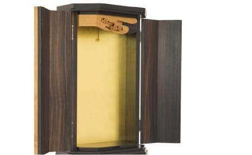 扉は正三方開きという、前面・両側面が開く作りになっており、左右に座られる方も御本尊様を拝しやすいようになっています。普段は前面の扉のみを開くなど、工夫してお使いいただけます。