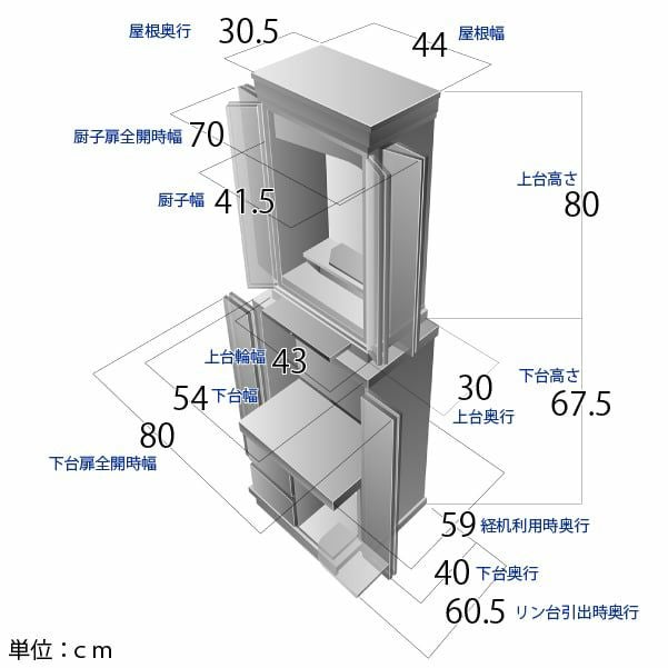 [厨子内寸法] 約 高さ57×幅34cm