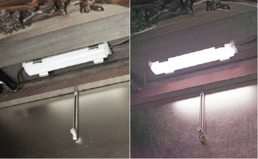 コンパクトでありながら、お仏壇内部を明るく照らす照明はLED。長期にわたり、明るく照らします。