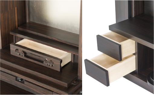 大切なものを収納していただくのにぴったりの引き出しです。思い出の品を大切に保管することができます。