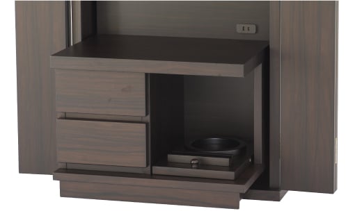 仏壇の外側と、下台の経机前にコンセントがついています。置トーロや電気ローソクをご利用いただくのに便利です。