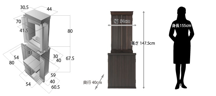 [本体寸法]約  高さ148×幅54×奥行き40cm