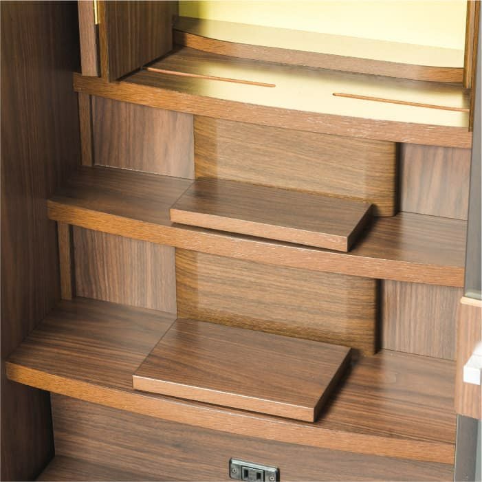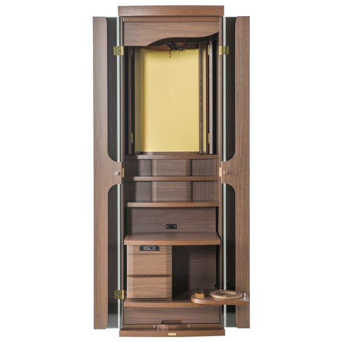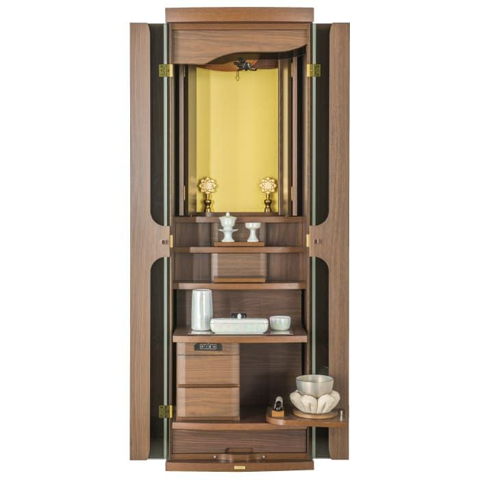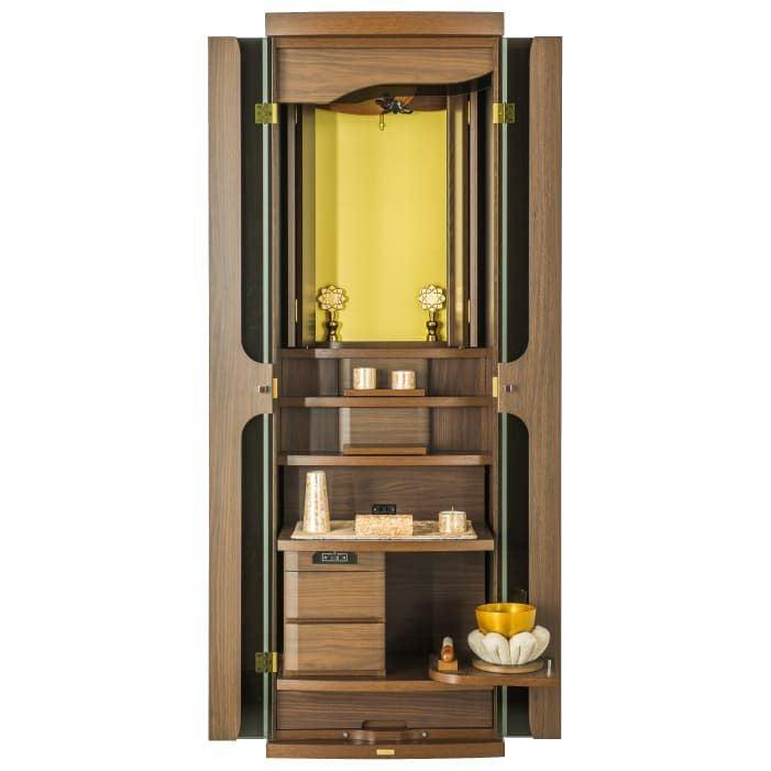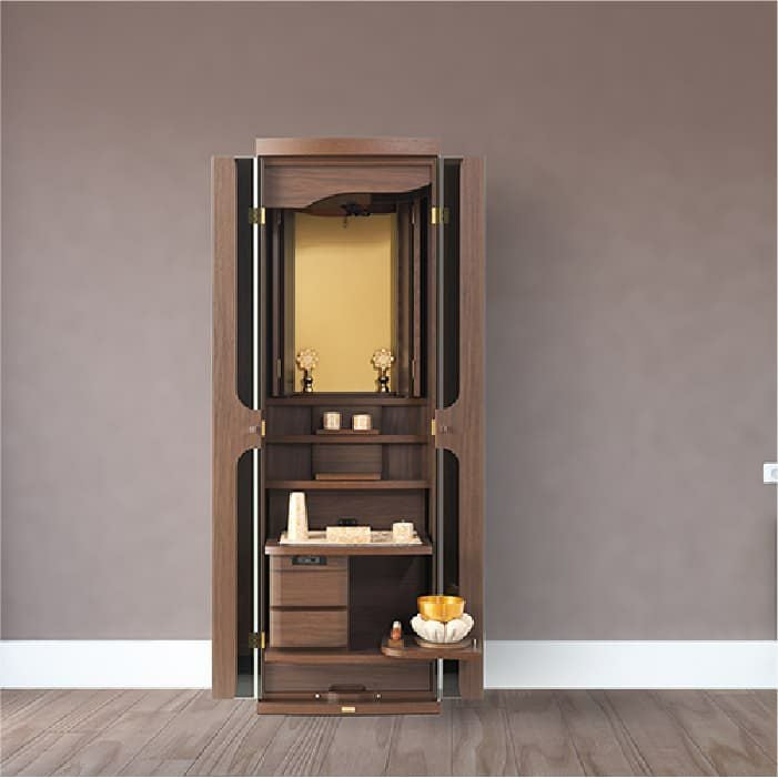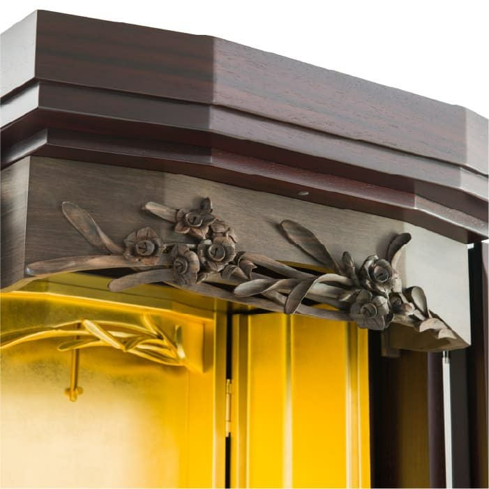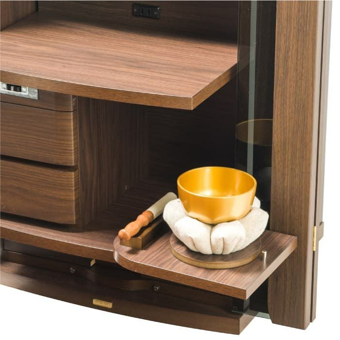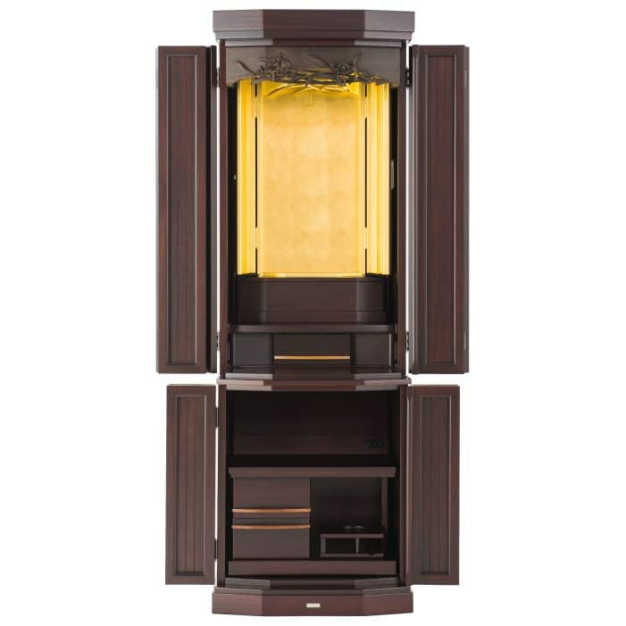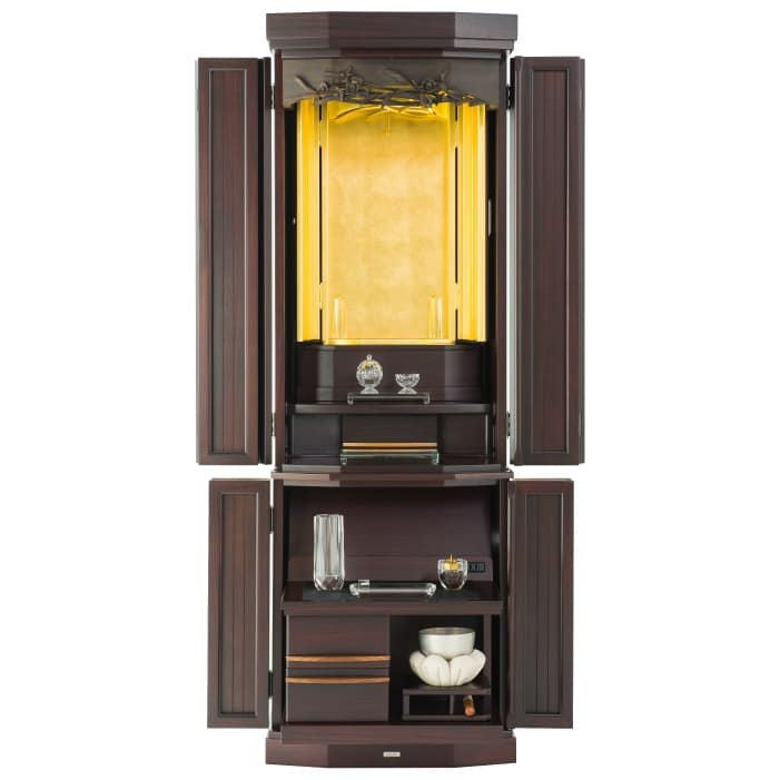 最高級の本黒檀を”今を生きる”私たちにフィットするお仏壇として再構築。扉を開けたときの本金箔の輝きが祈りを加速させます。
