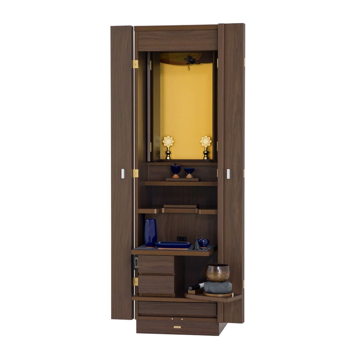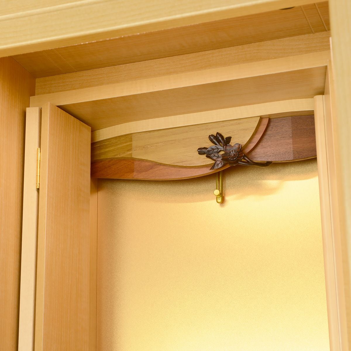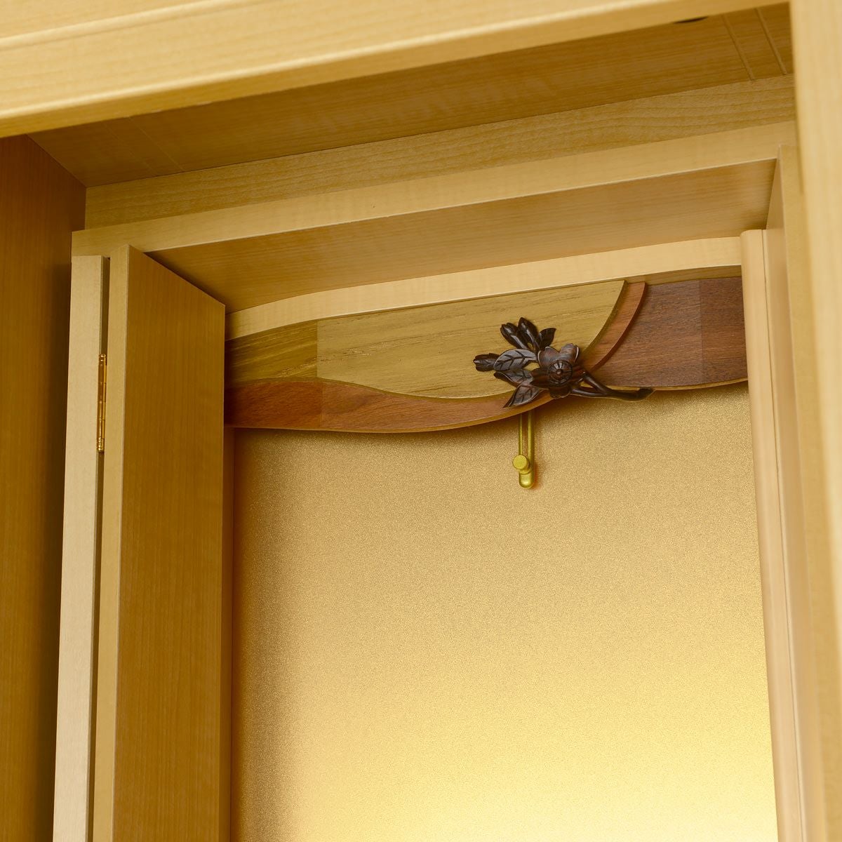 最高級の本黒檀を”今を生きる”私たちにフィットするお仏壇として再構築。扉を開けたときの本金箔の輝きが祈りを加速させます。