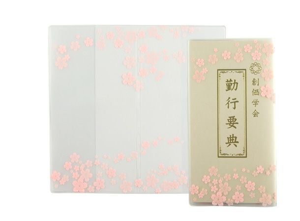 創価学会版のノート式お経本にピッタリサイズのカバーです。さくらの花びらを全体にあしらいました。