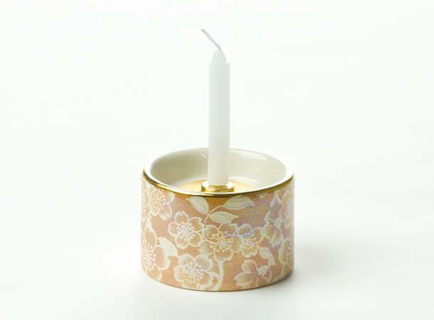 桜柄が美しい、陶器製の灯立です。
