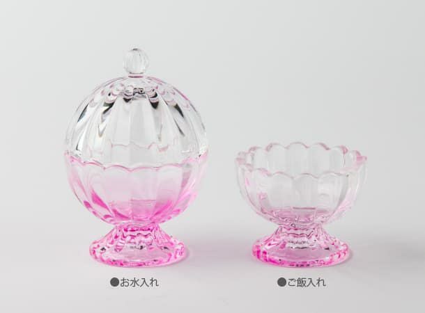 ガラス製のお水入れです。ご飯入れ・花立とセットでお使いいただけます。