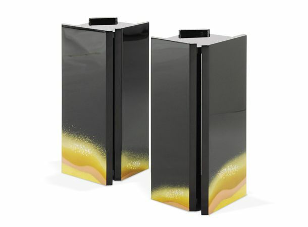 花立をのせる台です。伝統的な黒塗り(ポリエステル樹脂塗料)工法で何層にも塗装しました。シンプルで現代的なデザインに西陣の伝統金銀箔で荘厳しました。